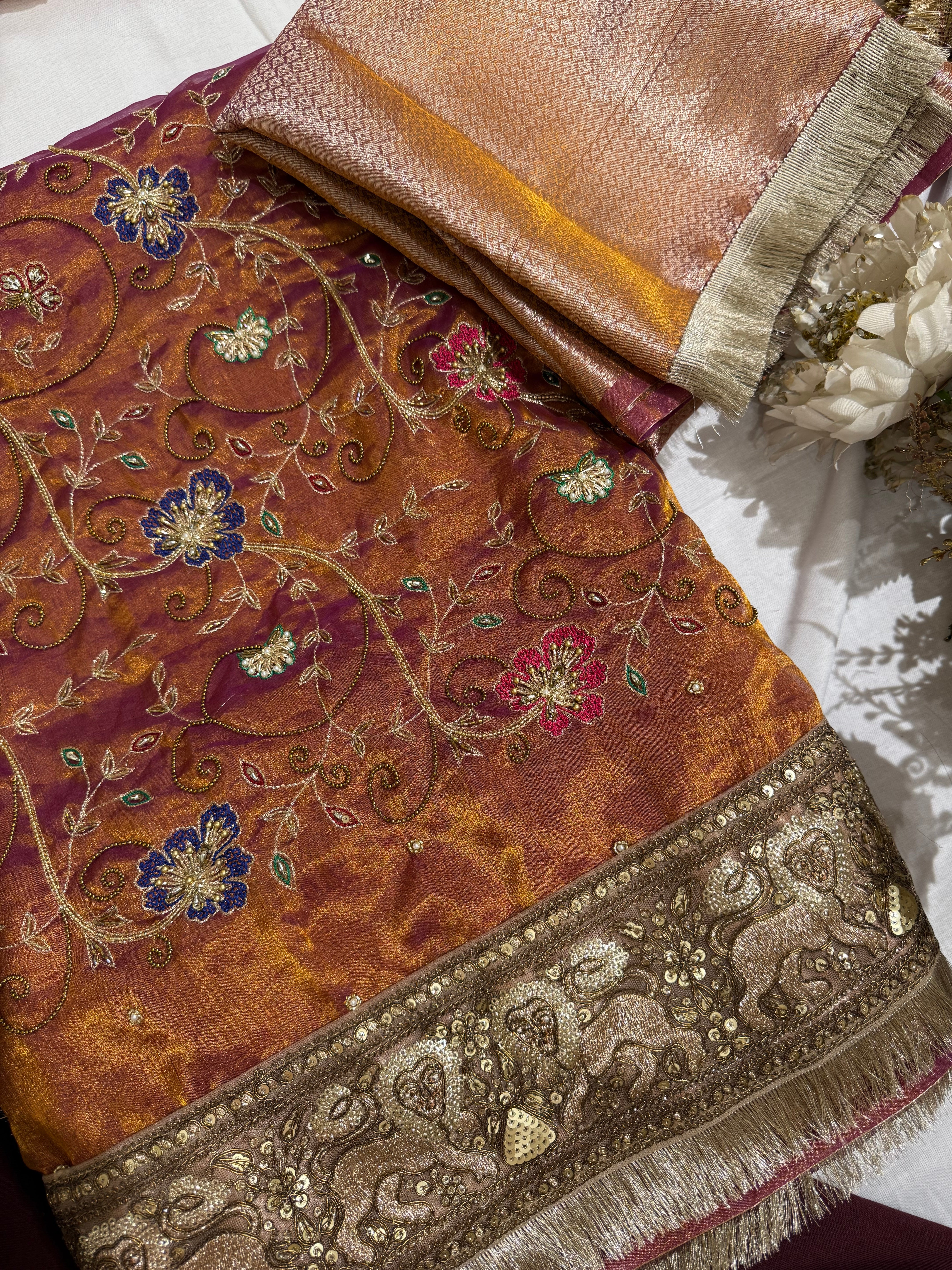 7 Phere Waali Saree - Pure Tissue Silk Saree With Hand Embroidery